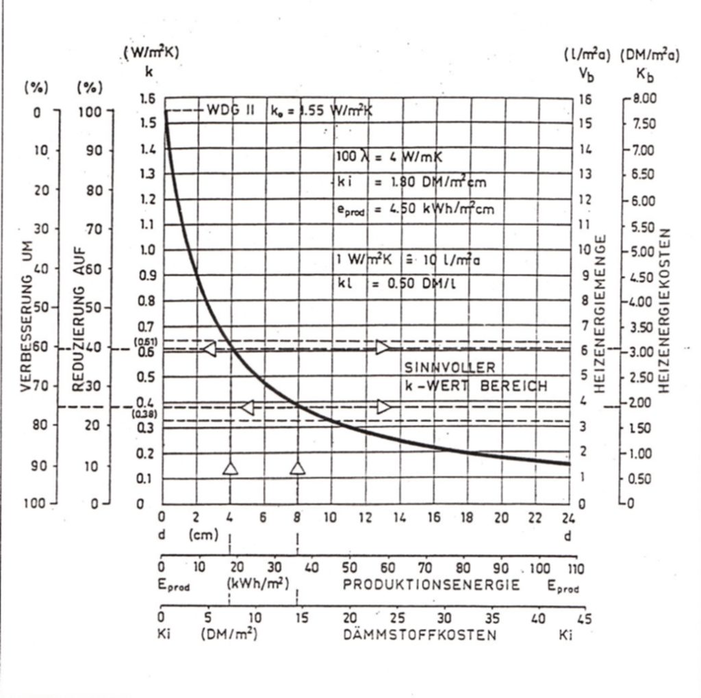 Man kann die Frage nach der Dicke der Dämmung auch beantworten durch den Blick auf die energetische Amortisation: